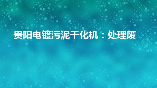 贵阳电镀污泥干化机:处理废弃物成新资源