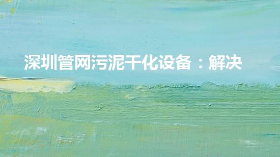 深圳管网污泥干化设备:解决城市污水处理难题的利器