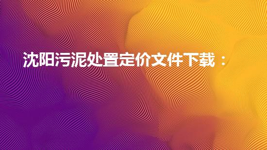 沈阳污泥处置定价文件下载:最新政策与操作方法