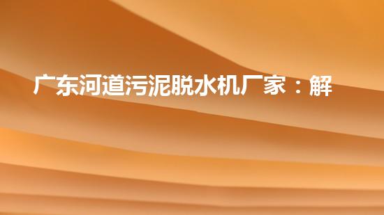广东河道污泥脱水机厂家:解决污泥处理难题