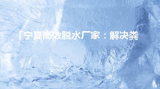 摘要:宁夏高效脱水厂家针对粪便污泥难题提出了解决方案。在此文章中,我们将从以下四个方面进行阐述:高效的脱水技术、环保的处理方法、减少资源浪费和经济效益。本文将深度分析这些方面并引用专家的观点和研究结果...