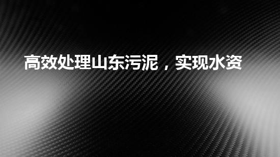 高效处理山东污泥,实现水资源可持续利用