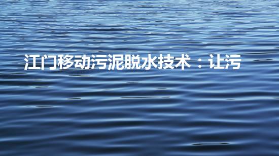江门移动污泥脱水技术:让污泥减量化处理成为可能