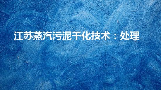 江苏蒸汽污泥干化技术:处理高含水污泥新方案
