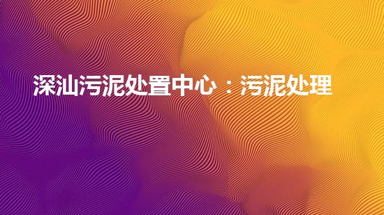 深汕污泥处置中心:污泥处理的前沿技术和应用