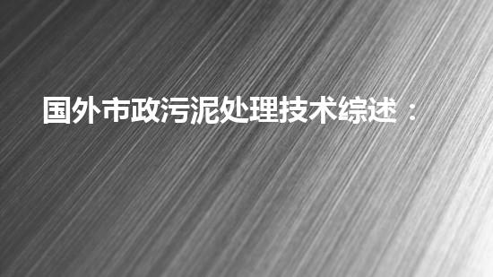 国外市政污泥处理技术综述:方法、挑战与前景