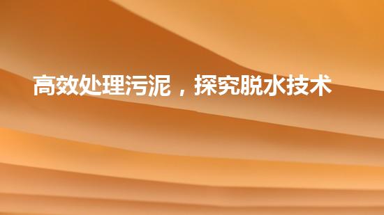 高效处理污泥,探究脱水技术