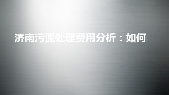 济南污泥处理费用分析:如何降低济南处置污泥的费用?