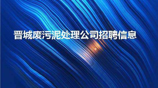 晋城废污泥处理公司招聘信息全解析