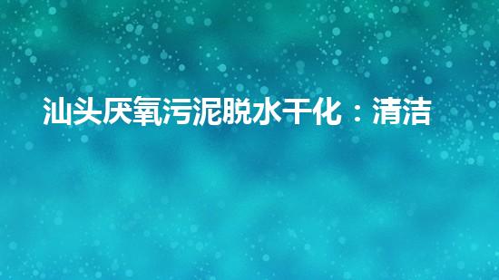 汕头厌氧污泥脱水干化:清洁环保新方案