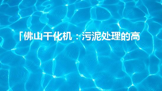 「佛山干化机:污泥处理的高效利器」