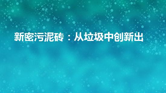 摘要:新密污泥砖是一种从垃圾中创新出的环保革命,其背后有着巴洛仕集团的支持。本文将从多个方面对新密污泥砖进行详细的讲解,介绍其创新技术及环保意义。一、新密污泥砖的研究背景污泥是城市生活污水处理过程中产...