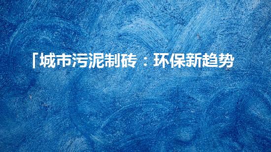 「城市污泥制砖:环保新趋势与制砖工艺解析」