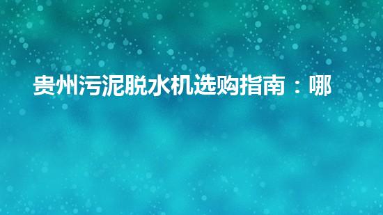 贵州污泥脱水机选购指南:哪种性价比更高?