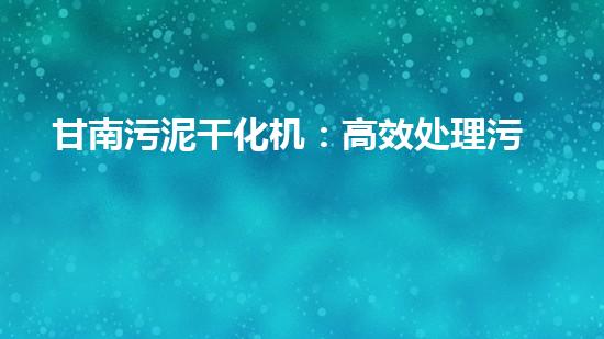 甘南污泥干化机:高效处理污泥,致力于环保事业