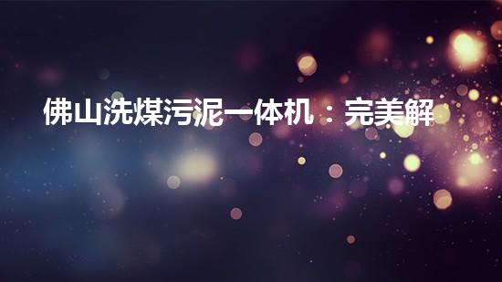摘要:佛山洗煤污泥一体机是一款能够完美解决污泥脱水难题的设备。本文将从机器的工作原理、应用领域、操作技巧、优势特点、维护保养以及相关案例等方面对其进行详细介绍。希望通过本文的介绍,能够让读者更好地了解...