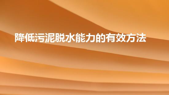 降低污泥脱水能力的有效方法及其影响分析