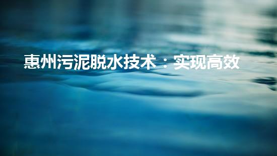 惠州污泥脱水技术:实现高效处理并节约成本