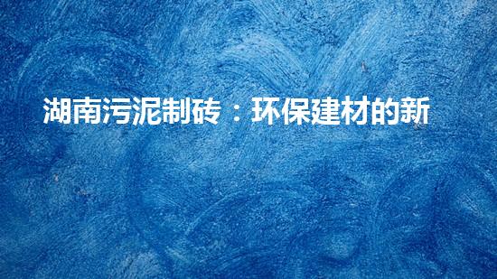 湖南污泥制砖:环保建材的新选择