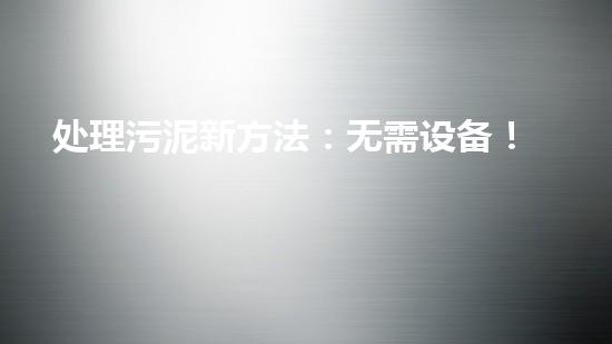 处理污泥新方法:无需设备!