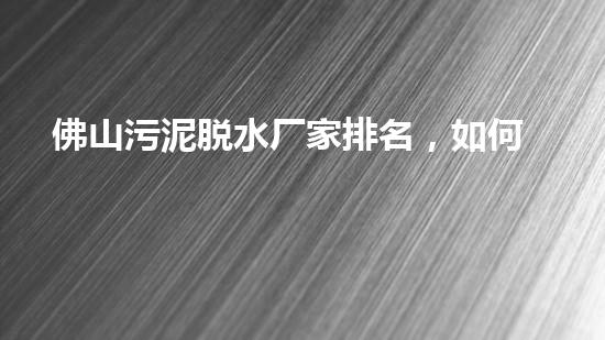 佛山污泥脱水厂家排名,如何选择靠谱厂家?