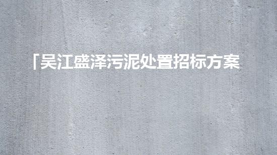 「吴江盛泽污泥处置招标方案」