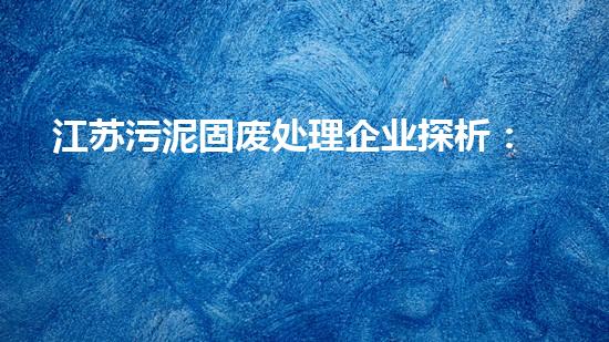 江苏污泥固废处理企业探析:技术与环境共赢