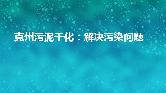 克州污泥干化:解决污染问题的新利器