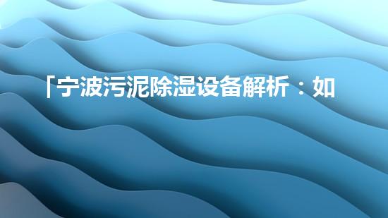 「宁波污泥除湿设备解析:如何高效处理湿度问题」