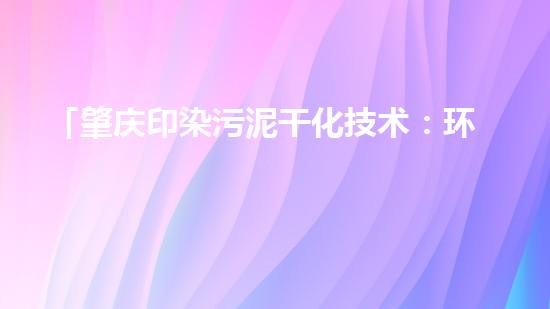 「肇庆印染污泥干化技术:环保、高效、成本可控」
