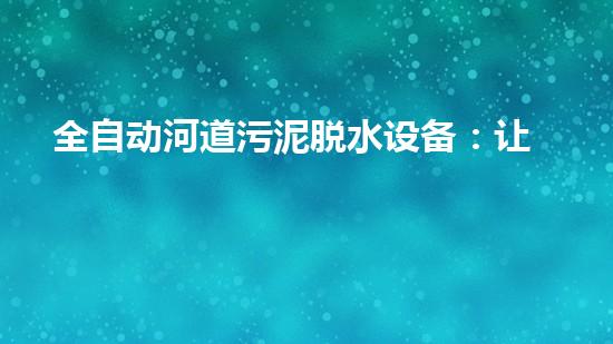 全自动河道污泥脱水设备:让河水变清洁