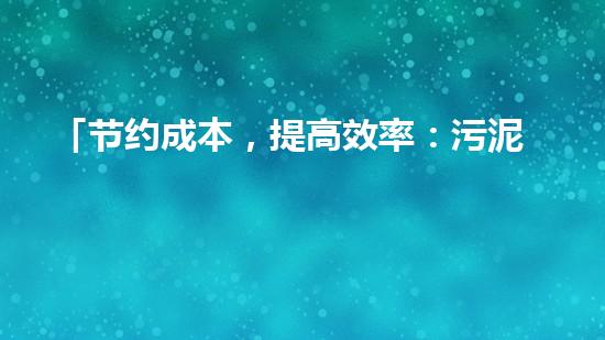 「节约成本,提高效率:污泥干化机的省钱工艺」