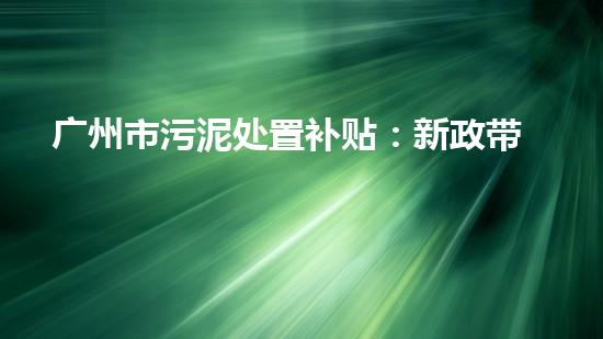 广州市污泥处置补贴:新政带来的环保变革