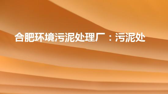 合肥环境污泥处理厂:污泥处理新方法与技术