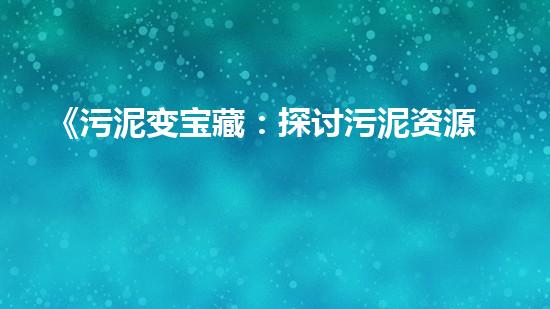 《污泥变宝藏:探讨污泥资源化利用价值》