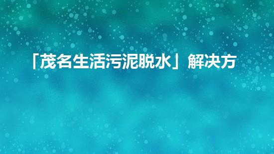 「茂名生活污泥脱水」解决方案:高效、环保、可持续