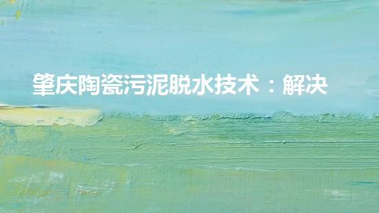 肇庆陶瓷污泥脱水技术:解决污泥处理难题