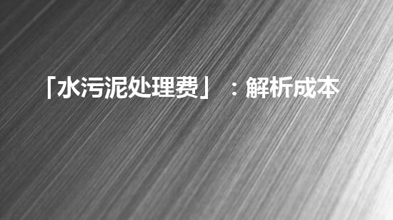 「水污泥处理费」:解析成本结构,探寻优化策略