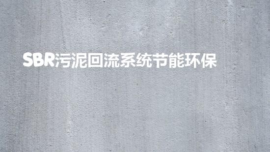 SBR污泥回流系统节能环保解决方案