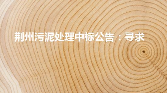 荆州污泥处理中标公告:寻求最佳清洁技术方案是一个受广泛关注的话题,随着环境污染问题的日益严重,人们对污泥处理方案的要求越来越高。本文将从多个方面对荆州污泥处理中标公告进行详细阐述,为读者提供全面且专业的信息。