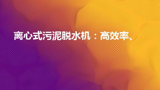 离心式污泥脱水机是一种高效率、环保、节能的新选择。该机型具有脱水效率高、节能环保、使用寿命长、应用领域广等特点,是处理污泥和废物的理想装置。