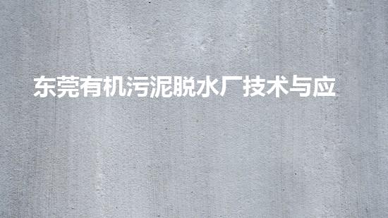 有机污泥脱水厂技术主要应用于污水处理、造纸厂、印染厂、造纸工厂等领域。在东莞地区,这些领域是应用有机污泥脱水技术的主要行业。