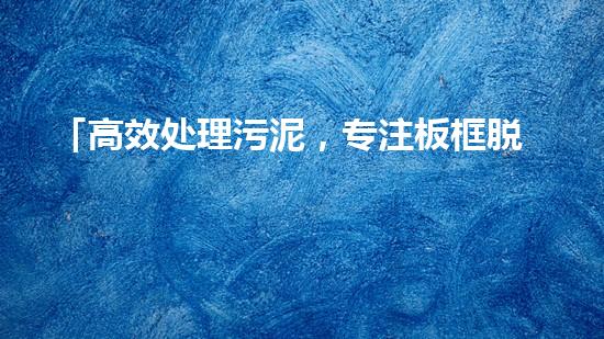 摘要:本文将介绍「高效处理污泥,专注板框脱水技术」,同时提供背景信息,为读者引出兴趣。