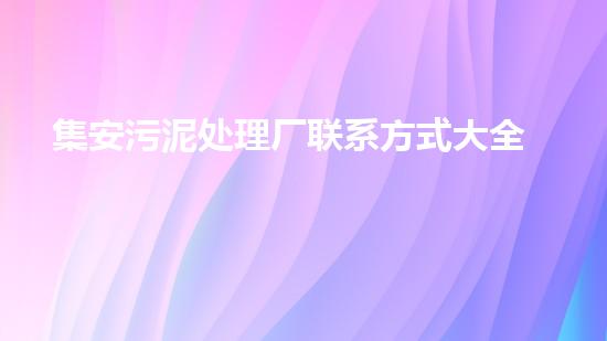 摘要:本文将介绍集安污泥处理厂的联系方式大全,旨在为读者快速解决关于污泥处理的各种问题,并提供相关背景信息。