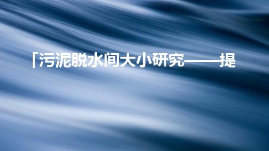 因此,污泥脱水间大小的研究非常必要,有助于提高污泥处理的效率,减少能源和时间的浪费。