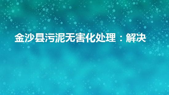随着城市化和工业化程度的加深,人们对环境保护的意识日益增强,污染问题成为一个受关注的重要话题。在金沙县地区,污泥成为了环境污染的一个重要来源,且对人们的生活和健康带来了严重的威胁。