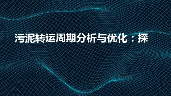 污泥转运周期的优化可以降低成本、提高生产效率,提升经济效益。