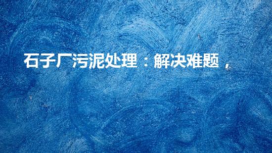 本文主要介绍石子厂污泥处理方案,旨在解决难题,保护环境。随着社会的不断发展,污染问题日益突出,针对石子厂污泥处理问题越来越受到人们的重视。为了解决这个问题,我们需要采用科学的方法进行处理,促进资源环境的可持续发展。本文将从多个角度,深入探讨石子厂污泥处理的相关问题。