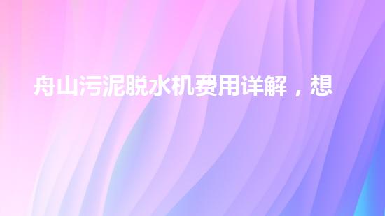 本文详细介绍了舟山污泥脱水机价格的构成和市场行情,并为购买脱水机的读者提供了具体的选择和注意点。