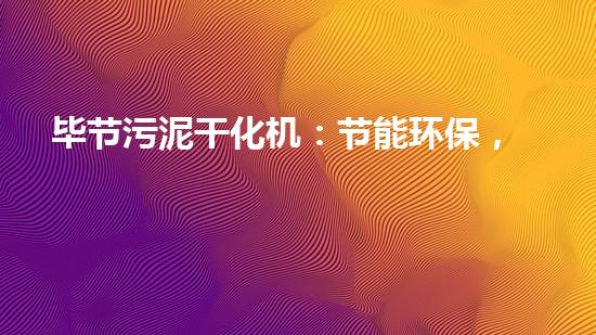 3. 处理效率高:毕节污泥干化机可以高效地处理大量的污泥,可以满足企业的不同需求。